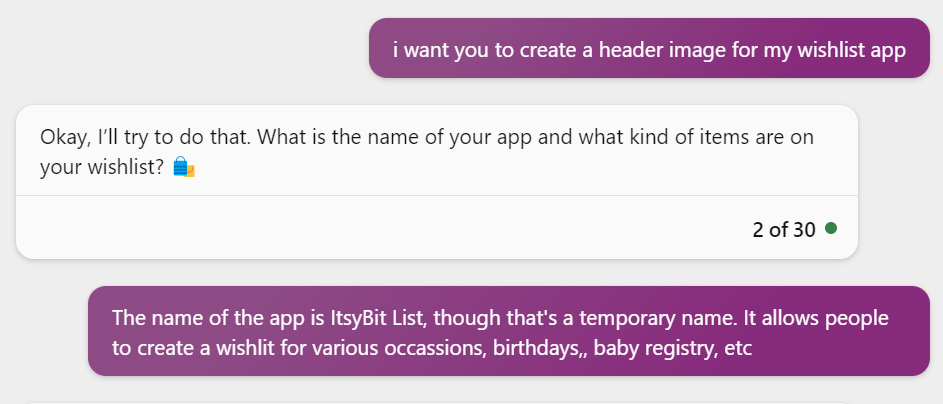 I still thought the images looked a bit off what I want the app to look like. So I added the prompt: “i think the image should have less balloons and have a more wish list idea. Also, the color scheme should be neutral. It seems to be leaning to a lot of pink“