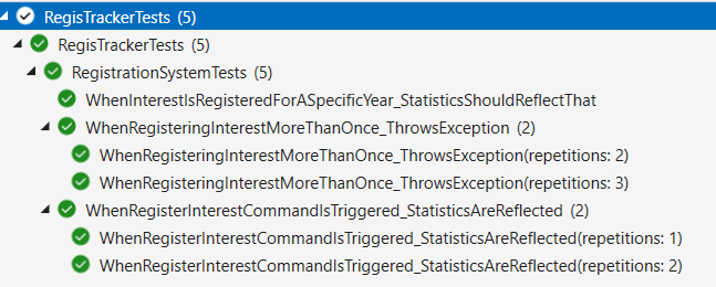 Again, as with TDD, I need the simplest solution to get my tests to pass. So I have a private variable that stores the current read model and every time the command successfully finishes persisting an individual, I update the read model with the latest data so that it is ready to be retrieved by the get.