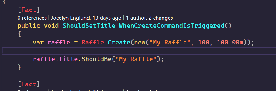 For persistence, I had implemented an in memory repository but now swapped it out with a file based repository, basically having the raffleIds as filenames. This is what the generated file looks like: