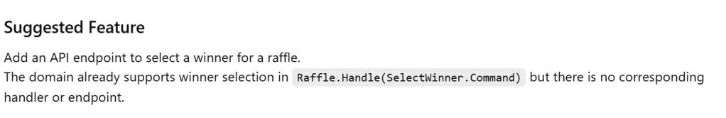 I had already implemented the select winner logic in my domain model but didn’t get around to finish the rest.